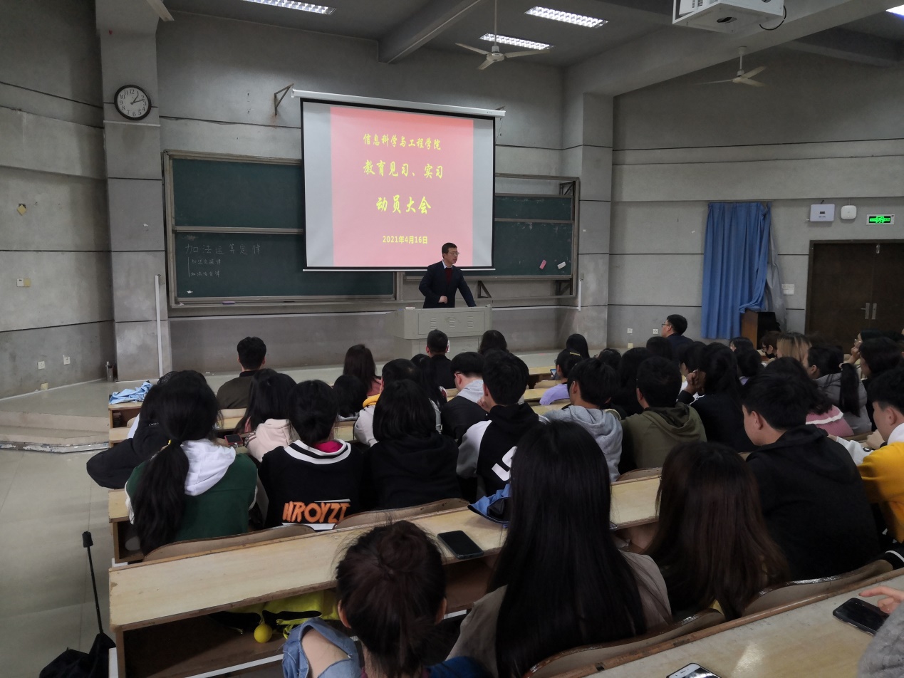 学院副院长何向阳在讲话中强调,教育见习、实习是人才培养的重要环节,理论联系实际的重要途径,全体学生要有理论联系实际的意识,要将见习实习所看到的问题进行研究,为进入工作岗位作足实践准备。同时,何向阳还对2018级四年制教育技术学专业学生毕业实习及毕业论文工作作了安排。