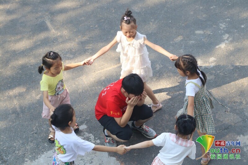 图为第一次见面后志愿者和小朋友一起玩游戏增进感情。中国青年网通讯员 马唯一 摄