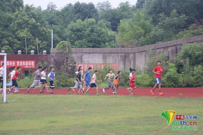 图为志愿者带领孩子们在操场上快乐的奔跑。中国青年网通讯员 段新利 供图