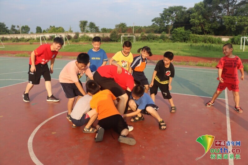 图为志愿者和孩子们一起打篮球。中国青年网通讯员 段新利 供图