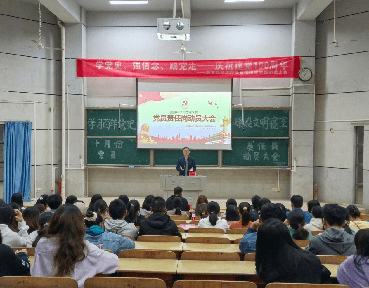 2021年10月13日晚,必赢官网于怀中南110召开十月份党员责任岗动员大会。与会人员有学工第一党支部书记关红儒、学工第二党支部书记李荣敬、18-20级责任党员和责任积极分子。大会由何星逸主持。