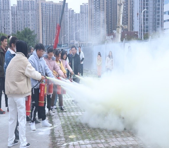 消防知识讲座过后,同学们在保卫与心育部的有序带领下来到乒乓球台旁边空地进行灭火器操作演练。按照老师的讲解,同学们拿起灭火器熟练操作, 一摇,二拔,三喷,面对熊熊大火,同学们临危不惧,成功将大火熄灭。通过此活动,同学们对消防灭火器使用的不再局限于书本中的纸上谈兵,而有实践操作经验,为以后突发性消防事故时能够有效地进行灭火逃生,奠定了良好的基础。领导鼓励我们积极进行实践,争做消防知识的传播者。
